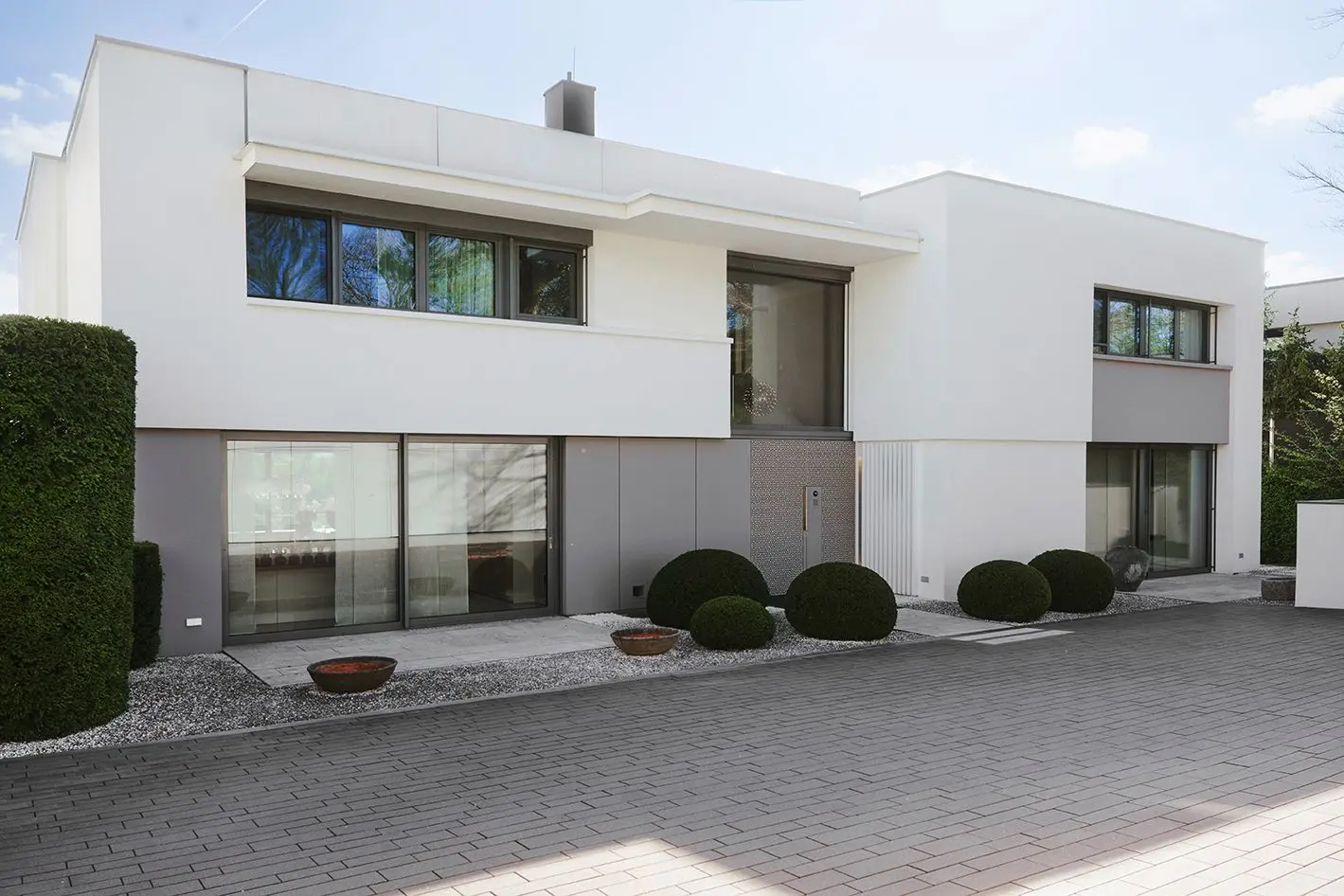 Pragmatischer Minimalismus vereint sich mit architektonischer Ästhetik. Zeitlos, stilsicher und hochwertig bis ins kleinste Detail geplant, ist diese Luxusvilla eine perfekte Kombination aus Funktionalität, Qualität, Optik und Design.