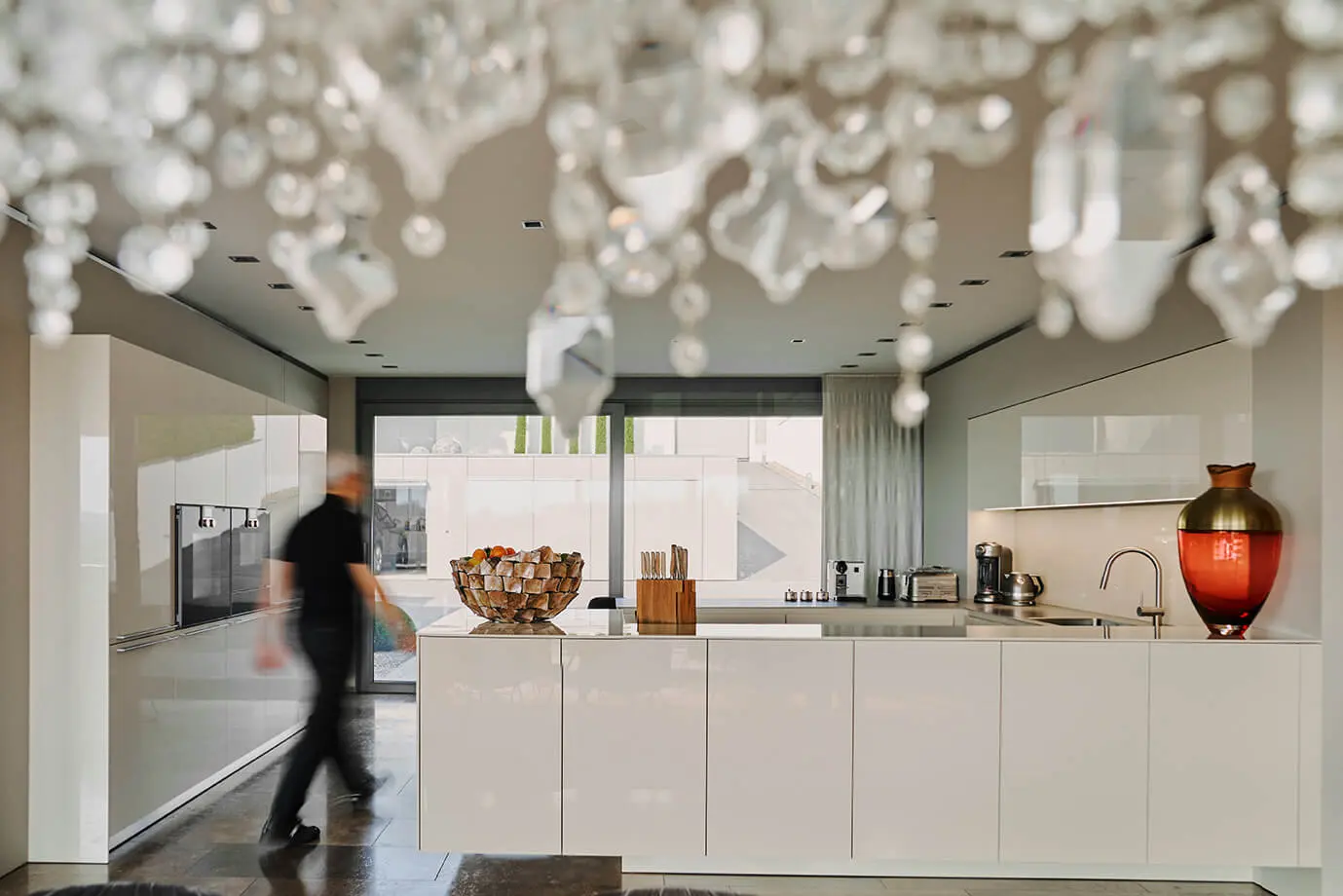 Die moderne Küche von Bulthaupt wird zum Zentrum für kulinarische Kreativität und ist mit erstklassigen Küchengeräten von Gaggenau und edlen Materialien ausgestattet. Hier können Sie Ihre Kochkünste entfalten. Eine elegante Kochinsel mit Sitzgelegenheiten lädt zum Verweilen und Genießen ein.